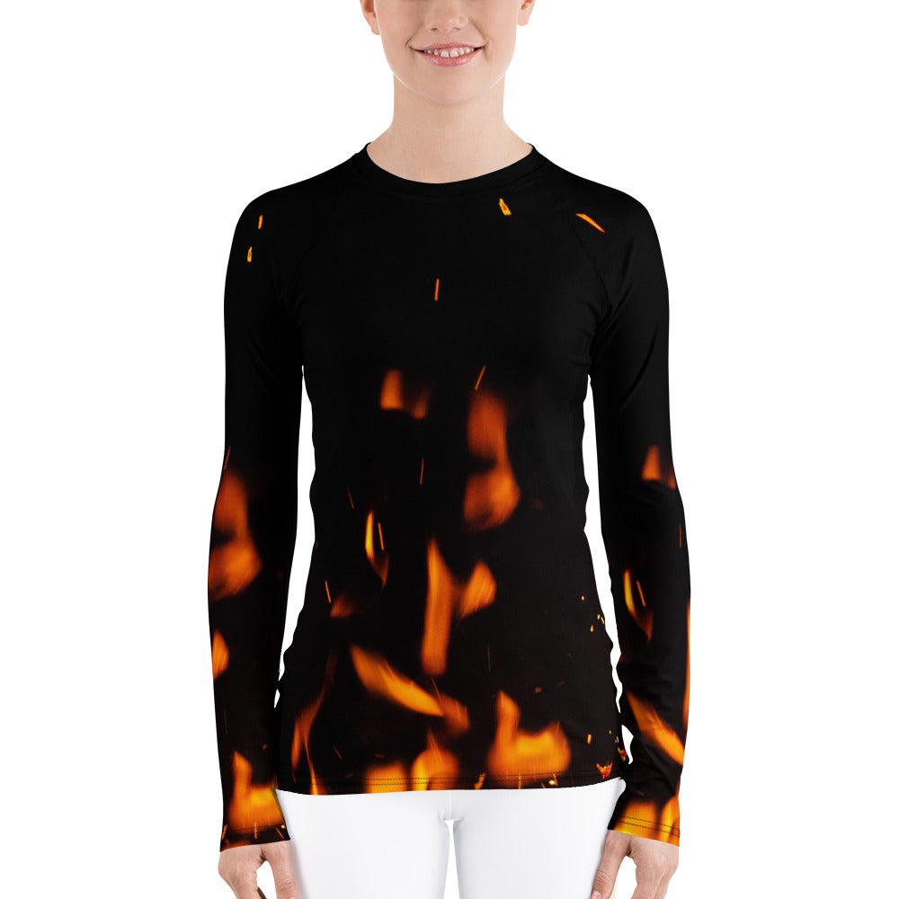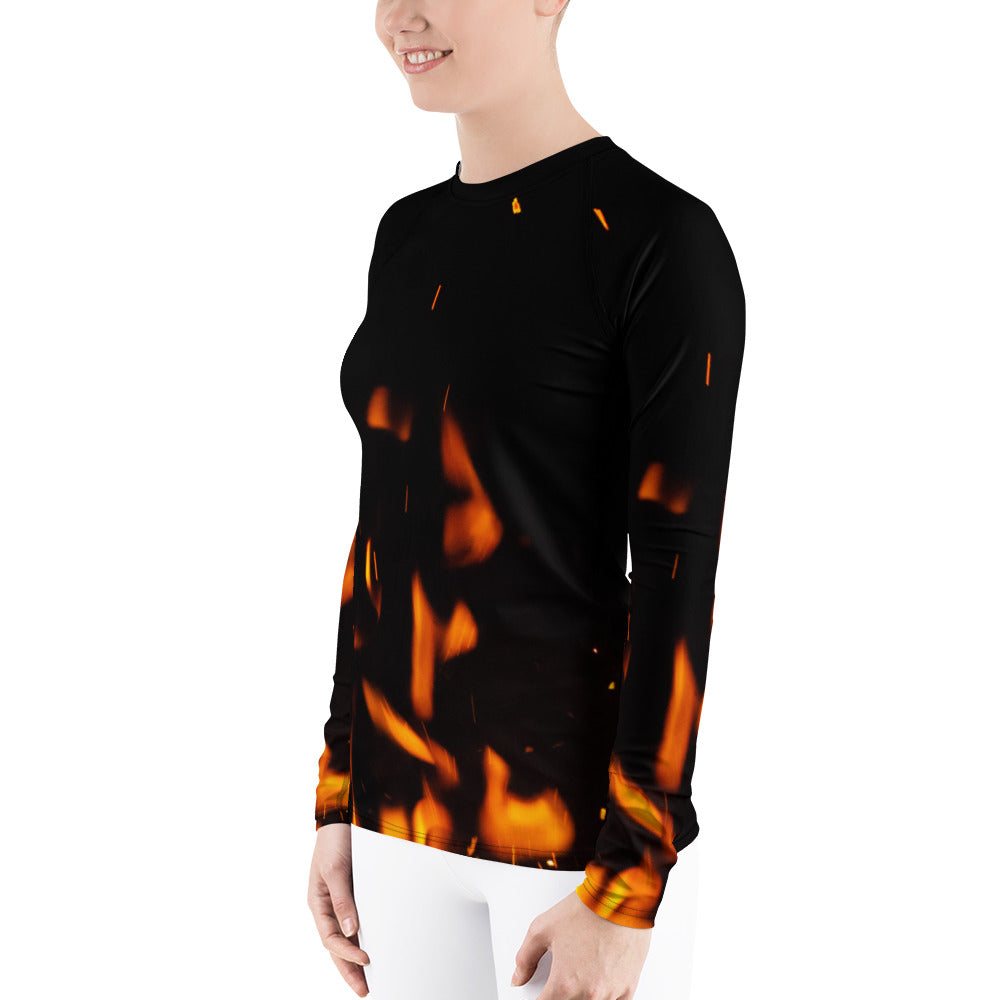 Cheerful Women's Rash Guard. Fire in Dark!