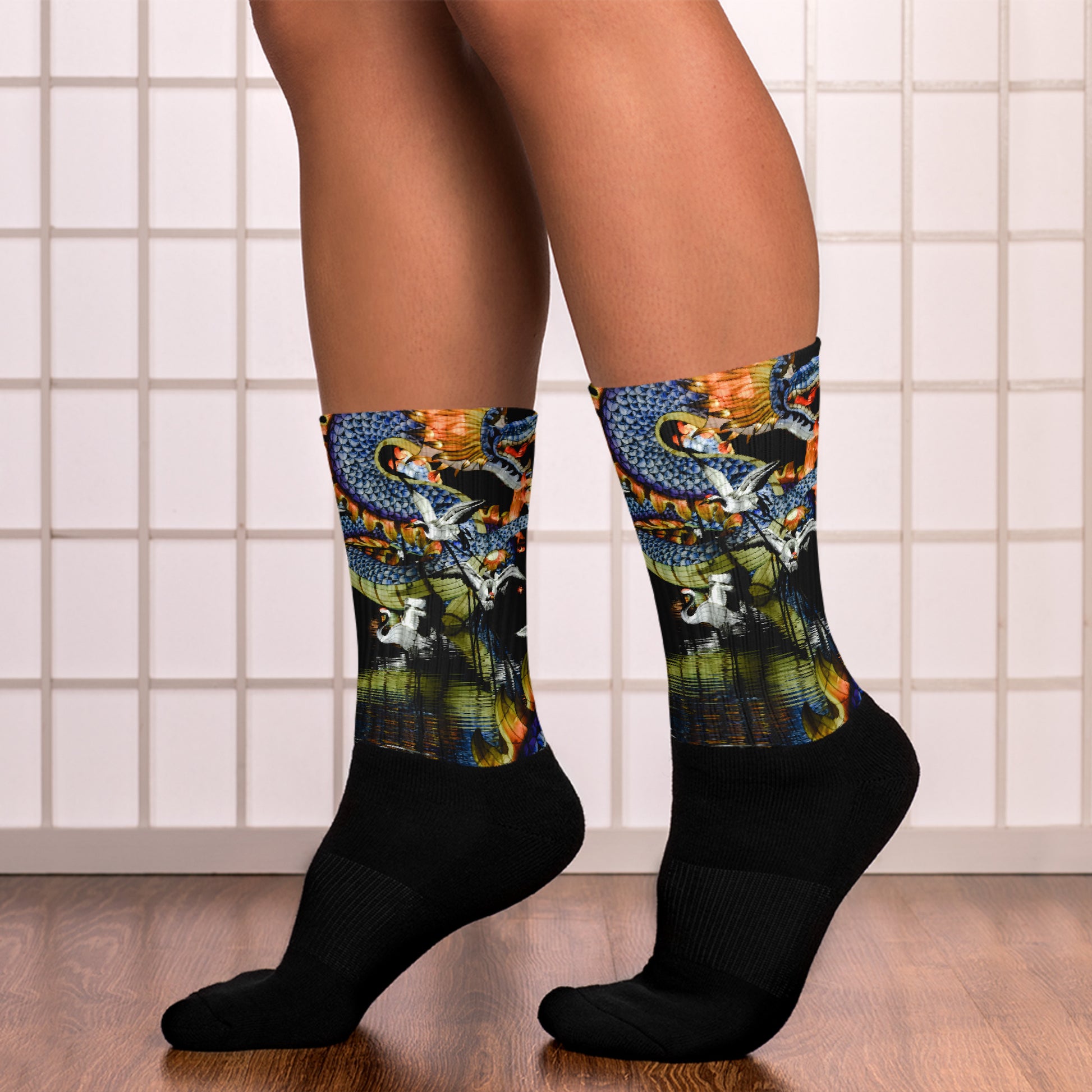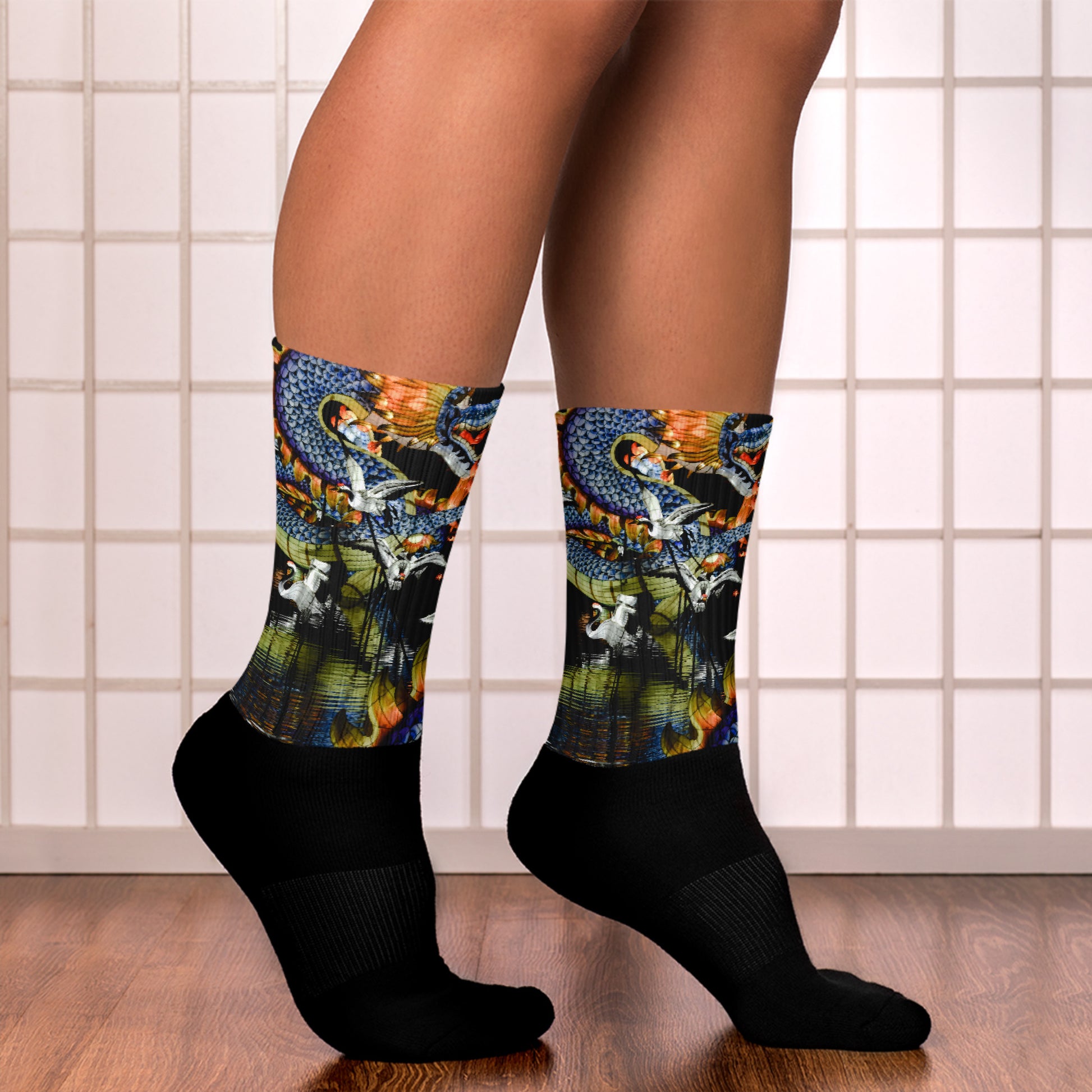 The best socks on two feet! These socks are extra comfortable thanks to their cushioned bottom. The foot is black with artwork printed along the leg with crisp, bold colours that won't fade.