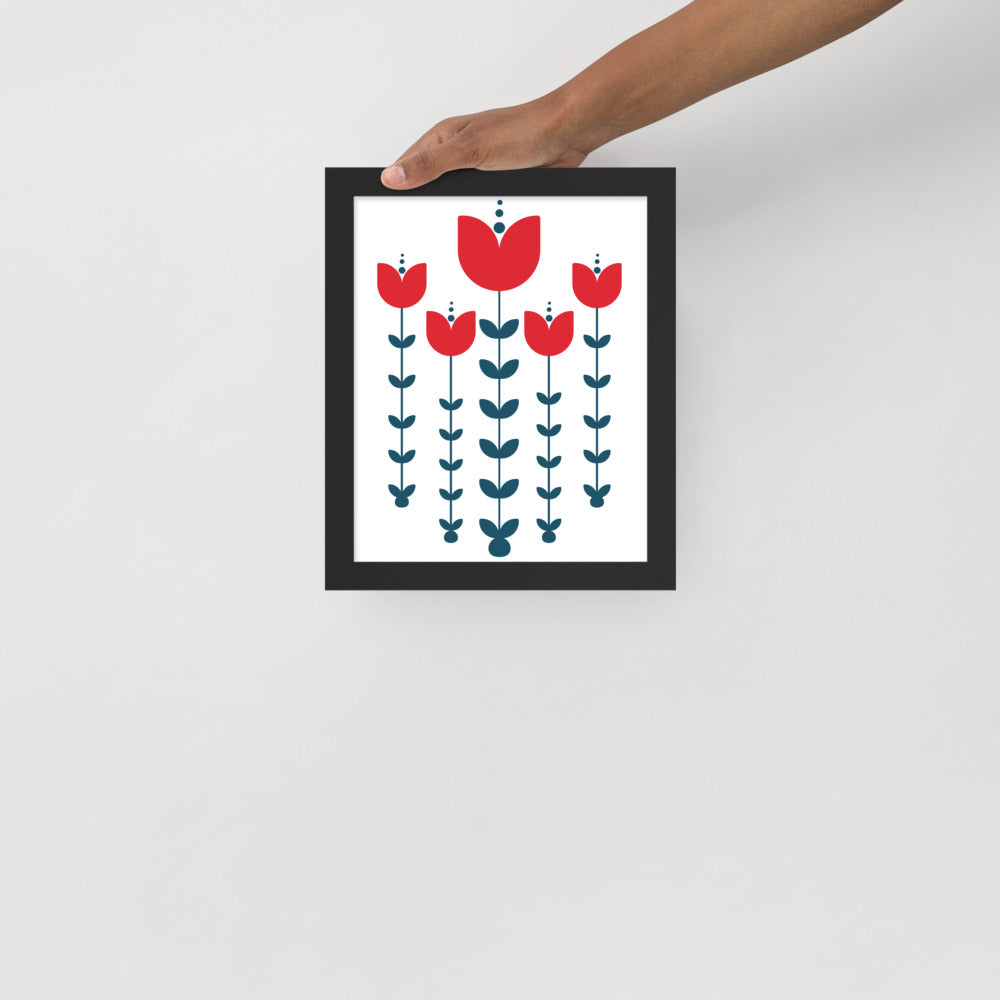 Red Scandinavian Flowers Framed Photo Paper Poster