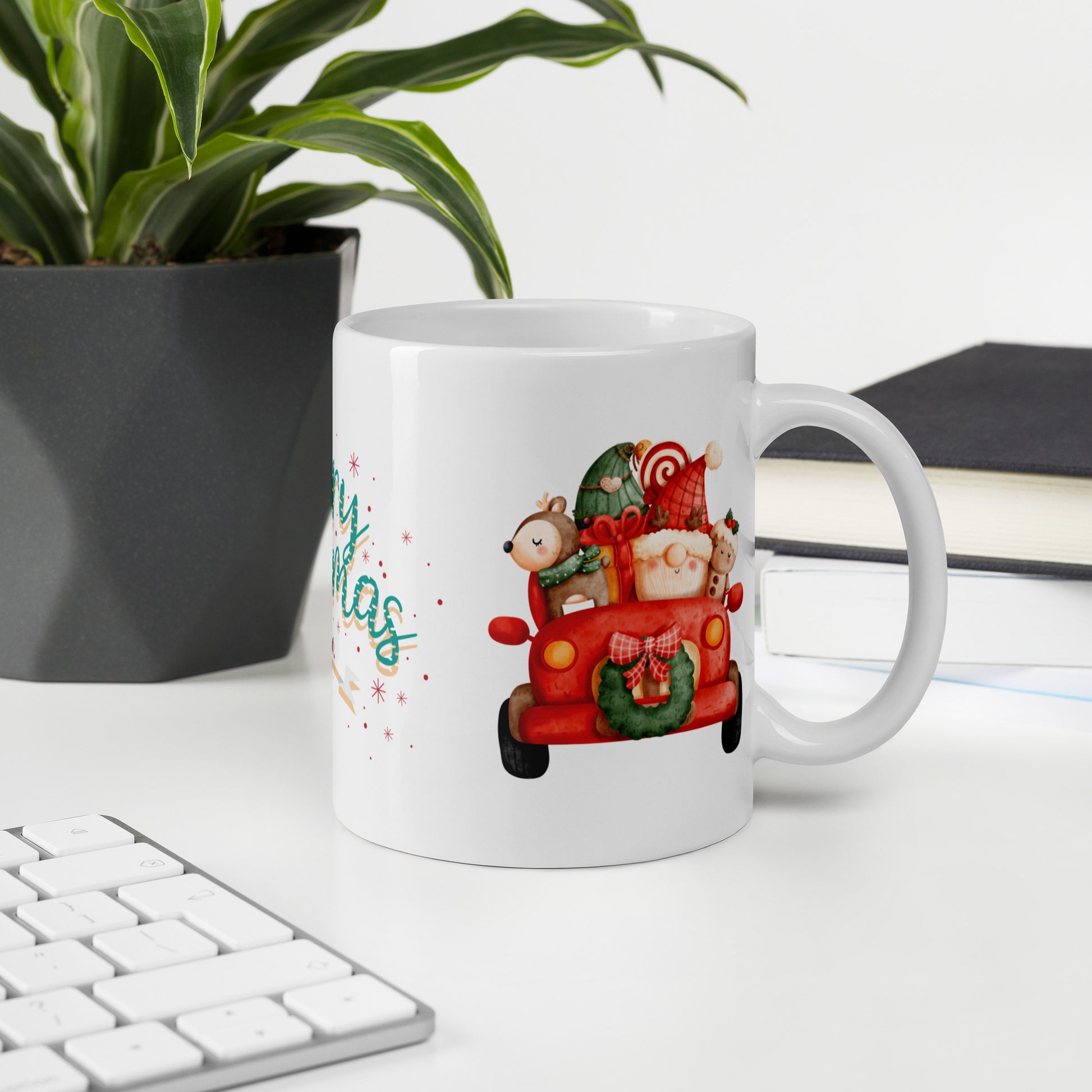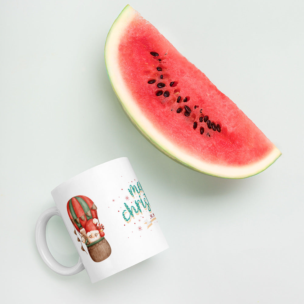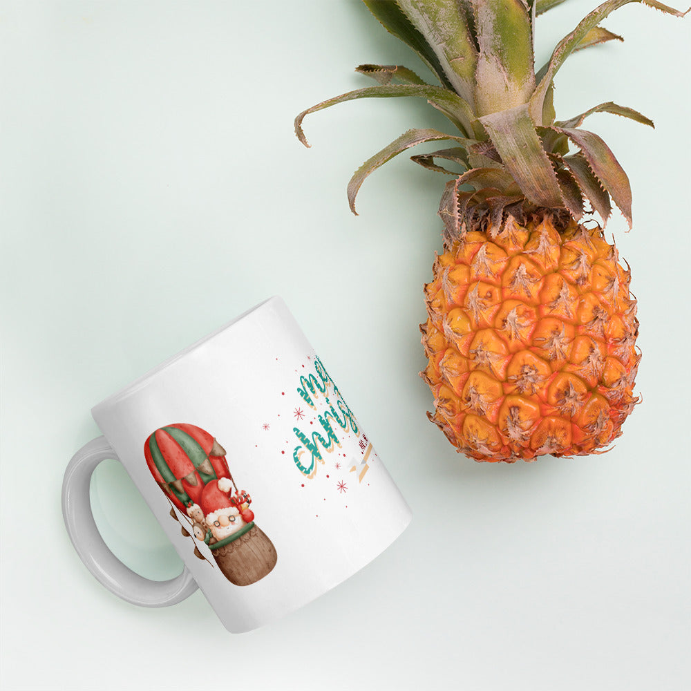 White Glossy Hot Chocolate, Coffee or Tea Mug Santa Gnome Merry Christmas