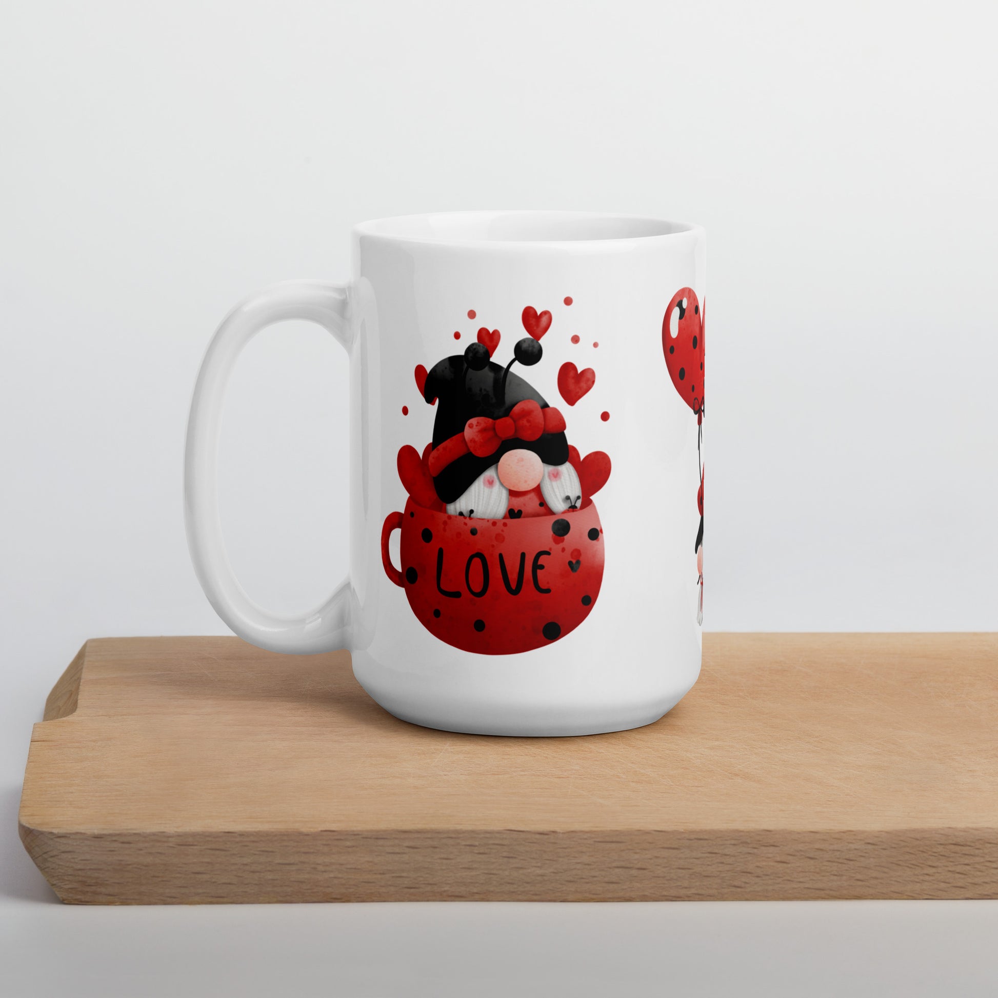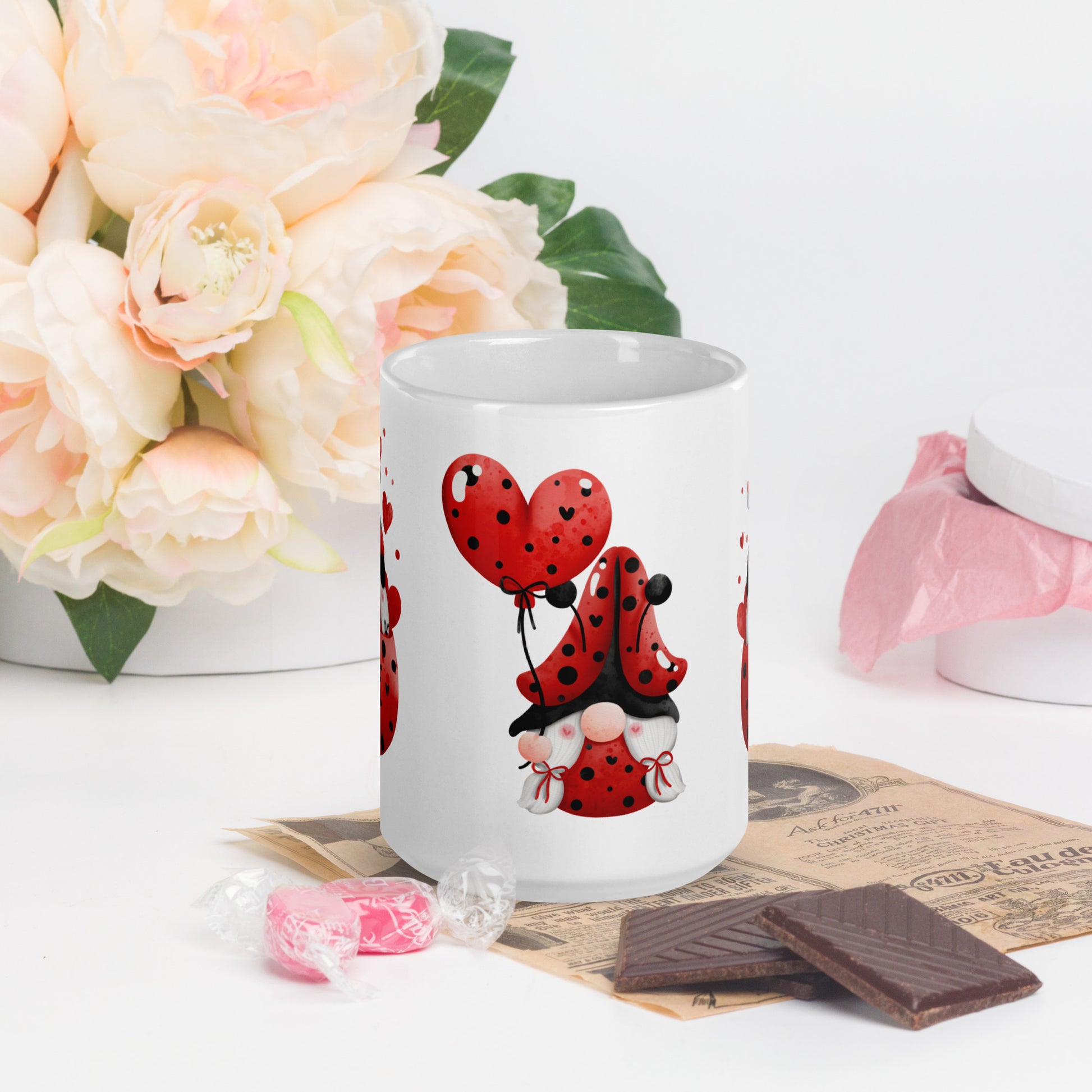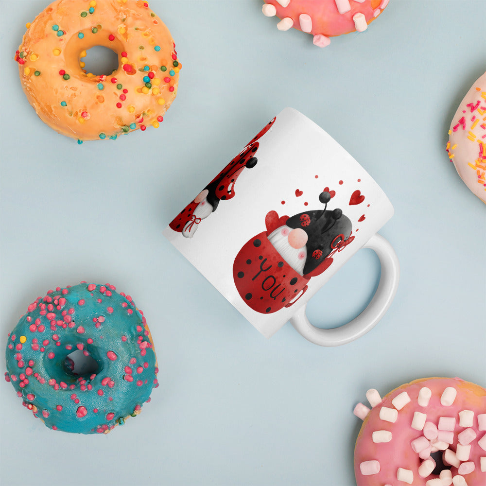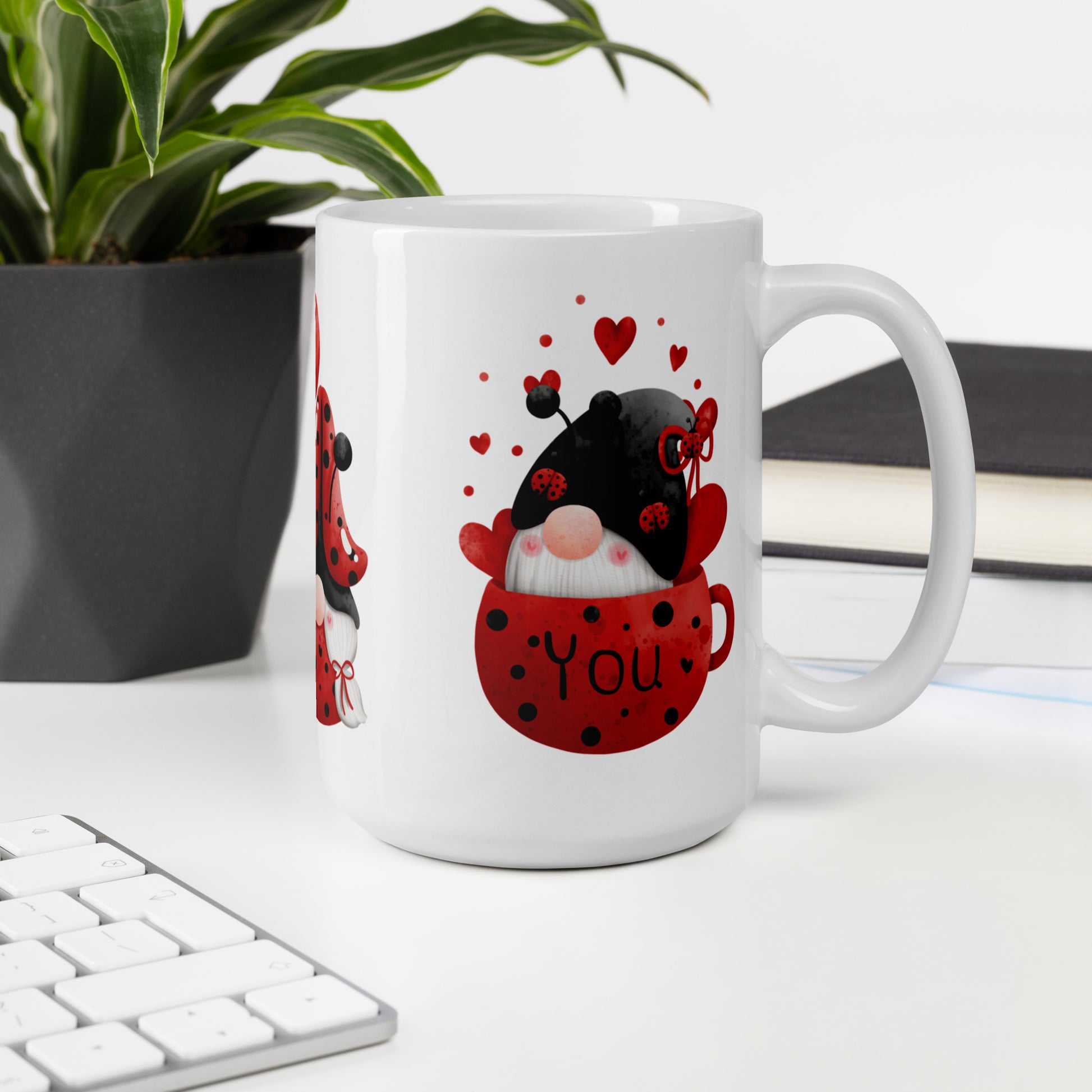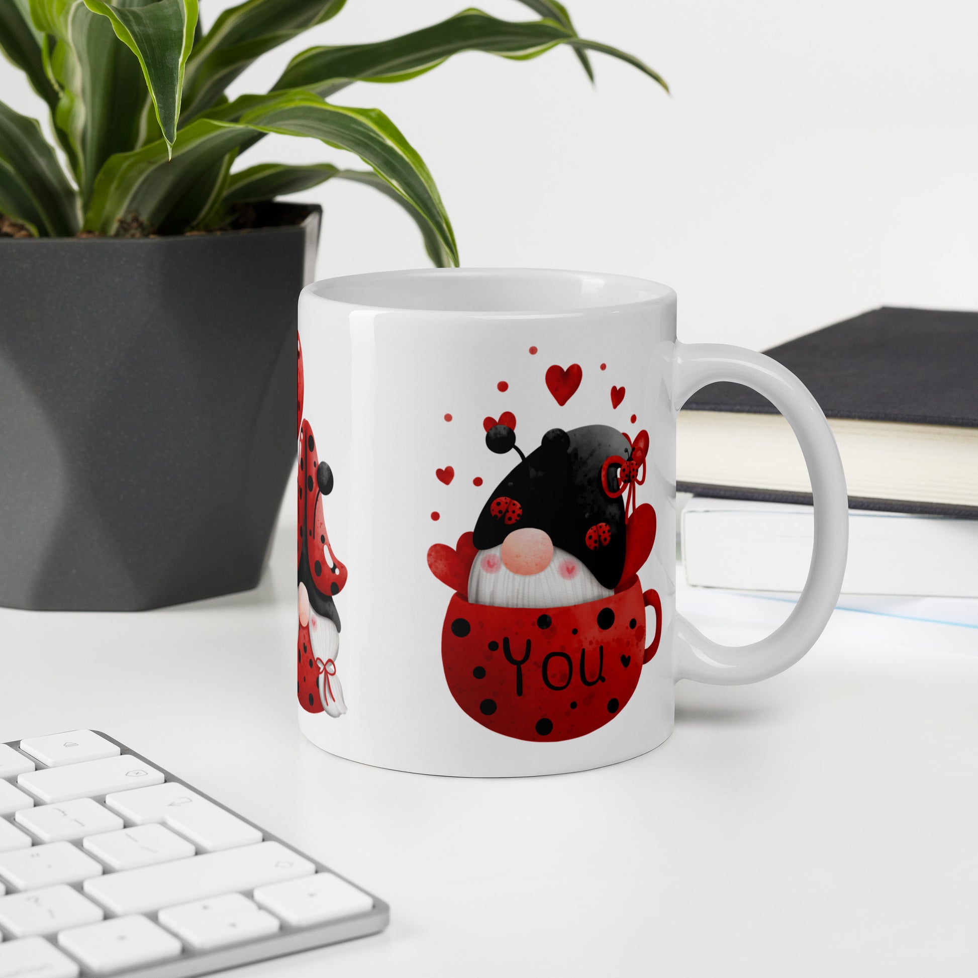 White Glossy Tea, Coffee or Hot Chocolate Mug Gnome Ladybug Love You