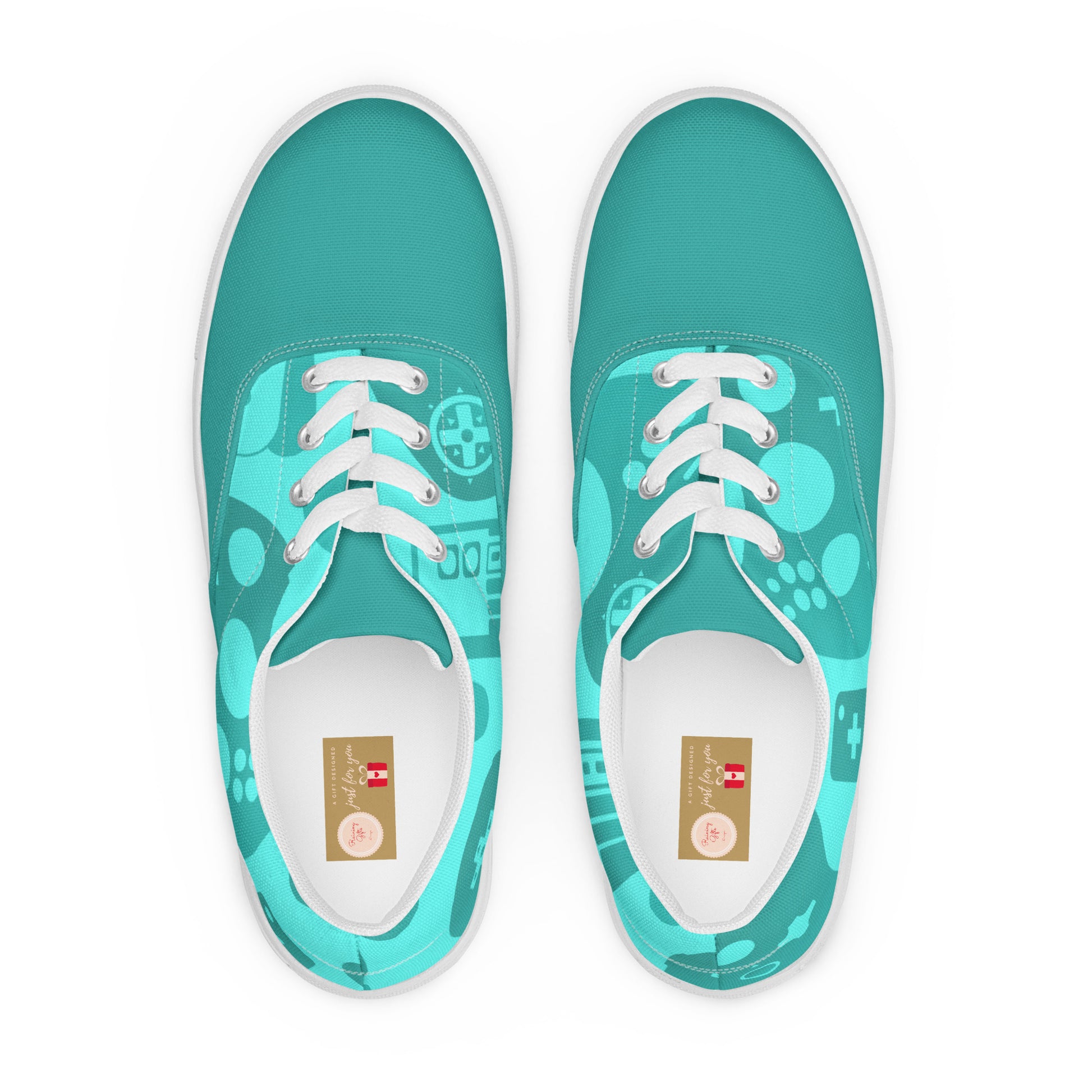 Game on Your Feet: Men's Lace-up Canvas Shoes with Gamepad Controller Design