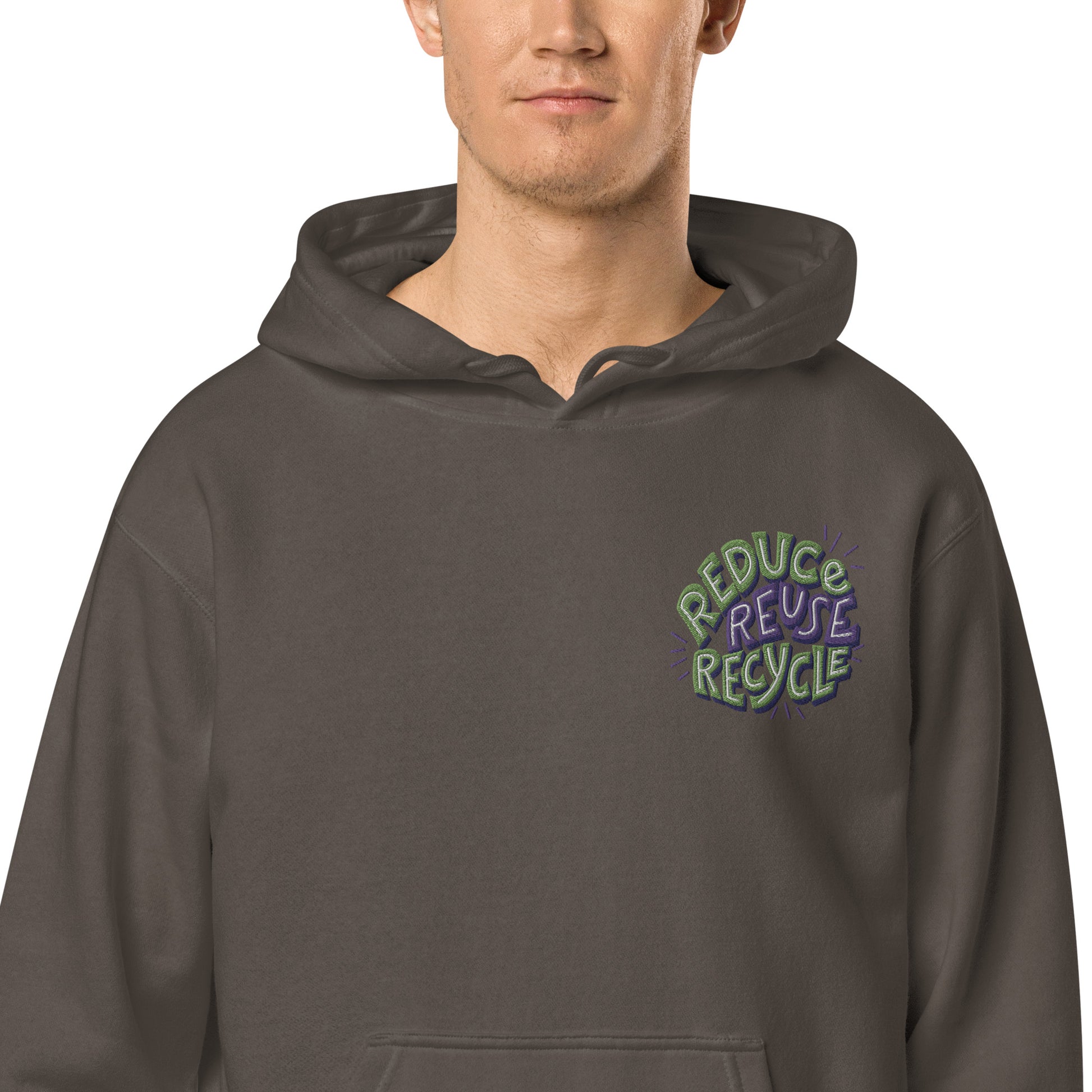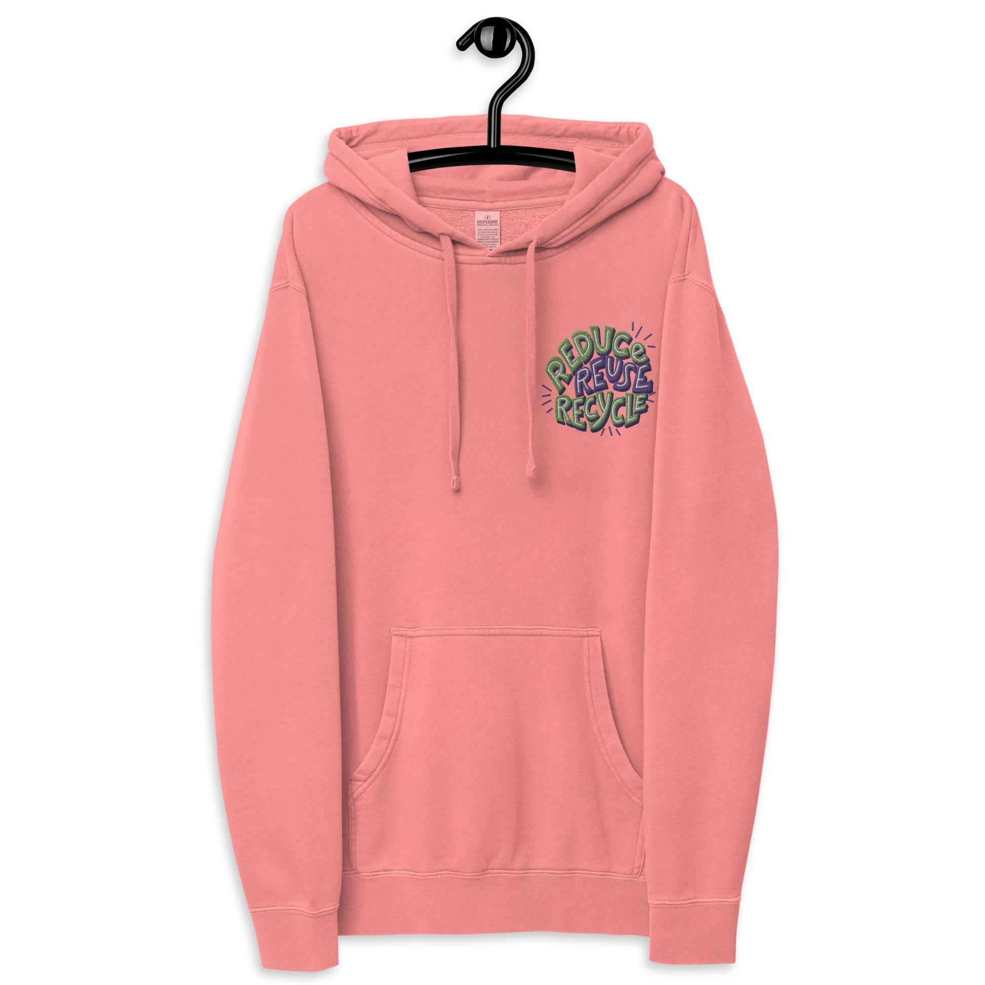 Unisex Embroidered Pigment Dyed Hoodie Reduce, Reuse, Recycle Lettering