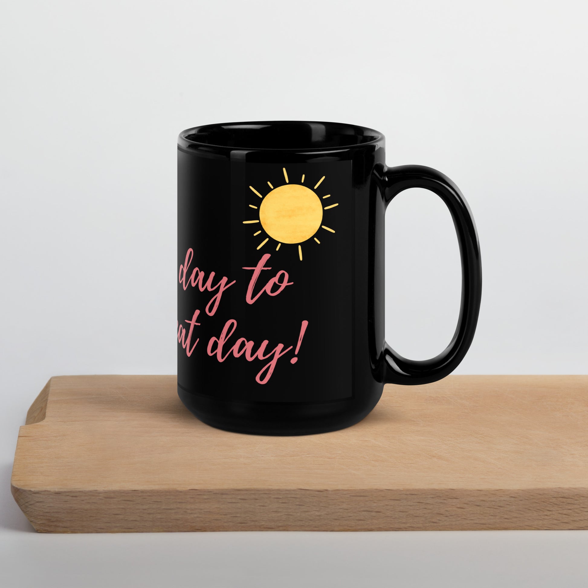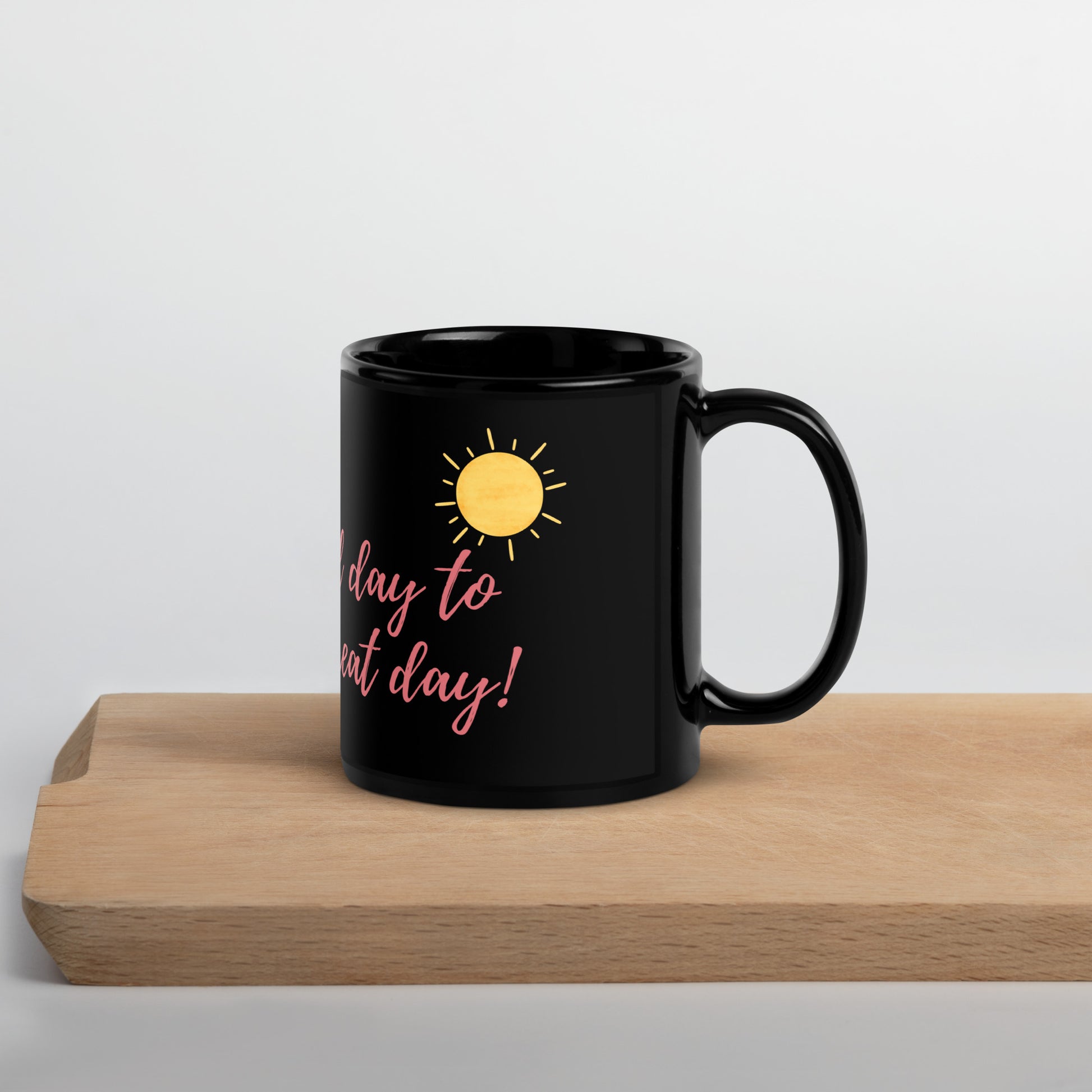 Sip Your Morning Fuel with our Inspiring Black Glossy Mug - Rise & Shine