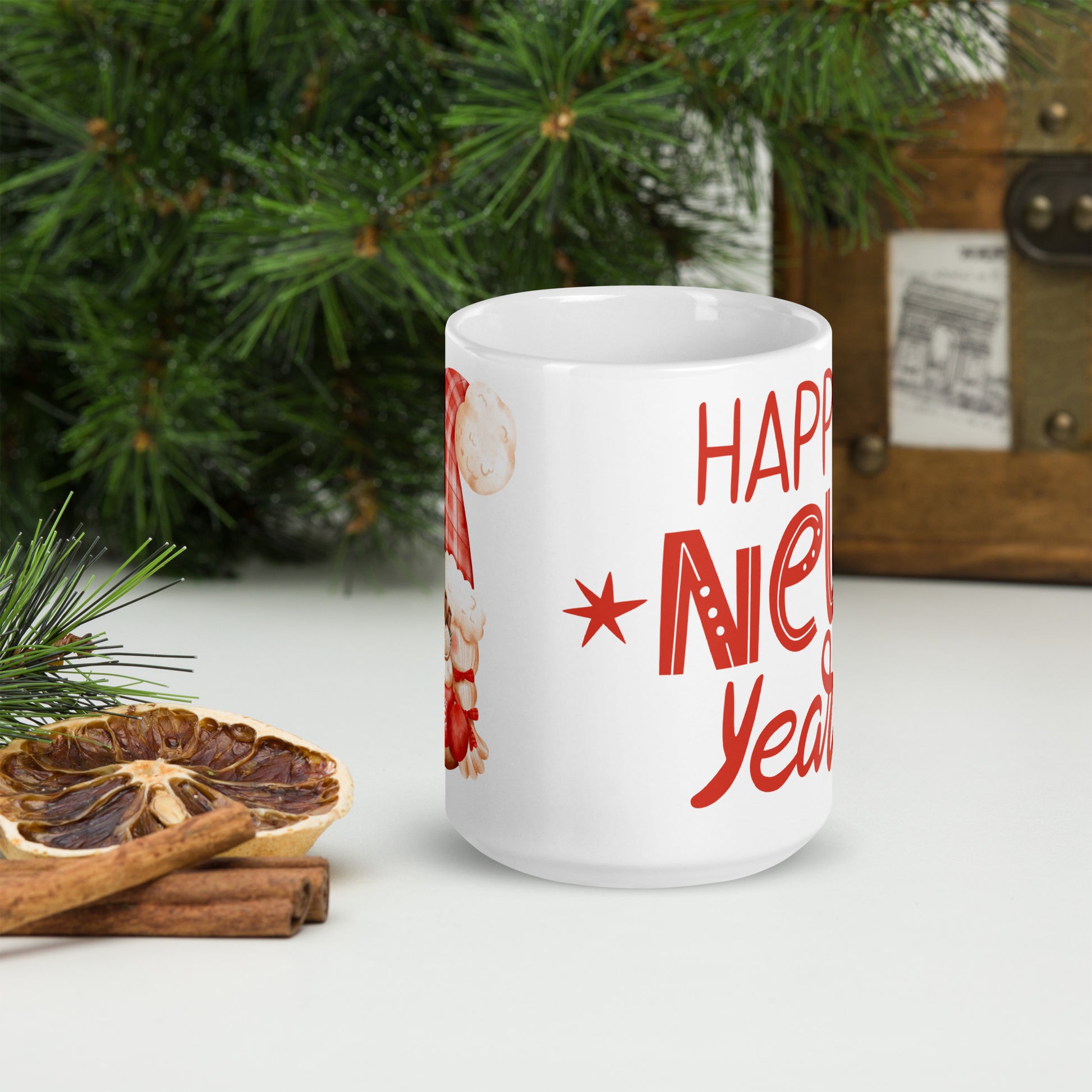 White Glossy Mug Happy New Year Gnome
